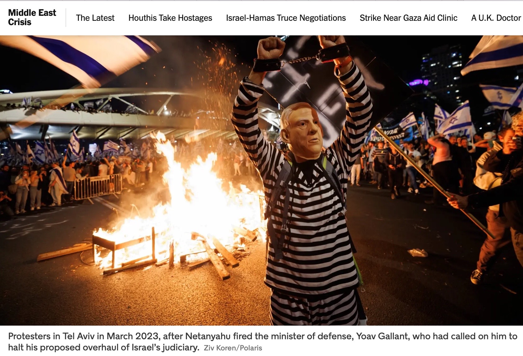 “… our reporting has led us to three unavoidable conclusions. In the years preceding the war, Netanyahu’s approach to Hamas helped to strengthen the group, giving it space to secretly prepare for war. In the months before that war, Netanyahu’s push to undermine Israel’s judiciary widened already-deep rifts within Israeli society and weakened its military, making Israel appear vulnerable and encouraging Hamas to ready its attack. And once the war began, Netanyahu’s decisions were at times colored predominantly by political and personal need instead of only military or national necessity.