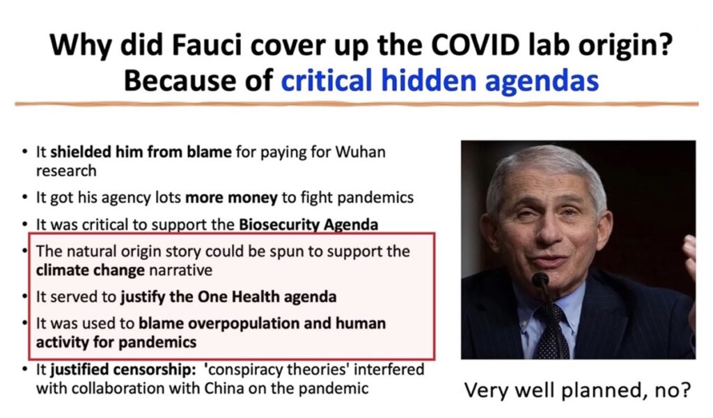 It is now widely acknowledged that SARS-CoV-2’s presumptive lab origin was covered up, with a plan conceived at the latest on February 1, 2020. I have suggested a variety of reasons why Dr. Fauci may have desired a coverup:
