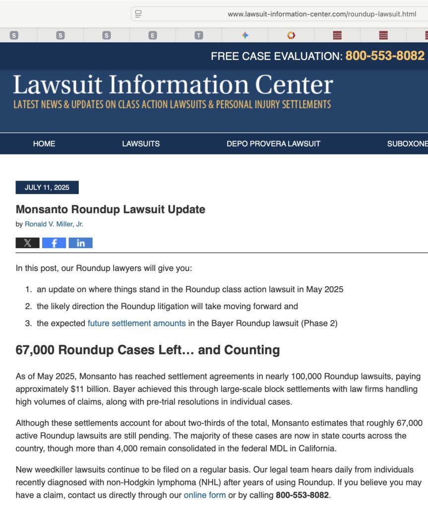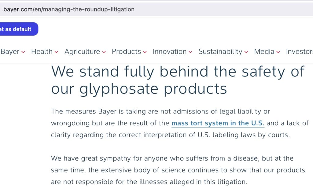 If you are still not convinced that Bayer is on a mission, led by its CEO Bill Anderson, a Texan, to kill its legal liability, the next article should convince you. Don’t be fooled!