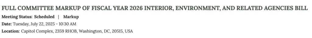 And this Tuesday at 10:30 am the bill in which the Bayer rider sits will be voted on by the full Appropriations committee. In Room 2359 of the Rayburn House Office Building.