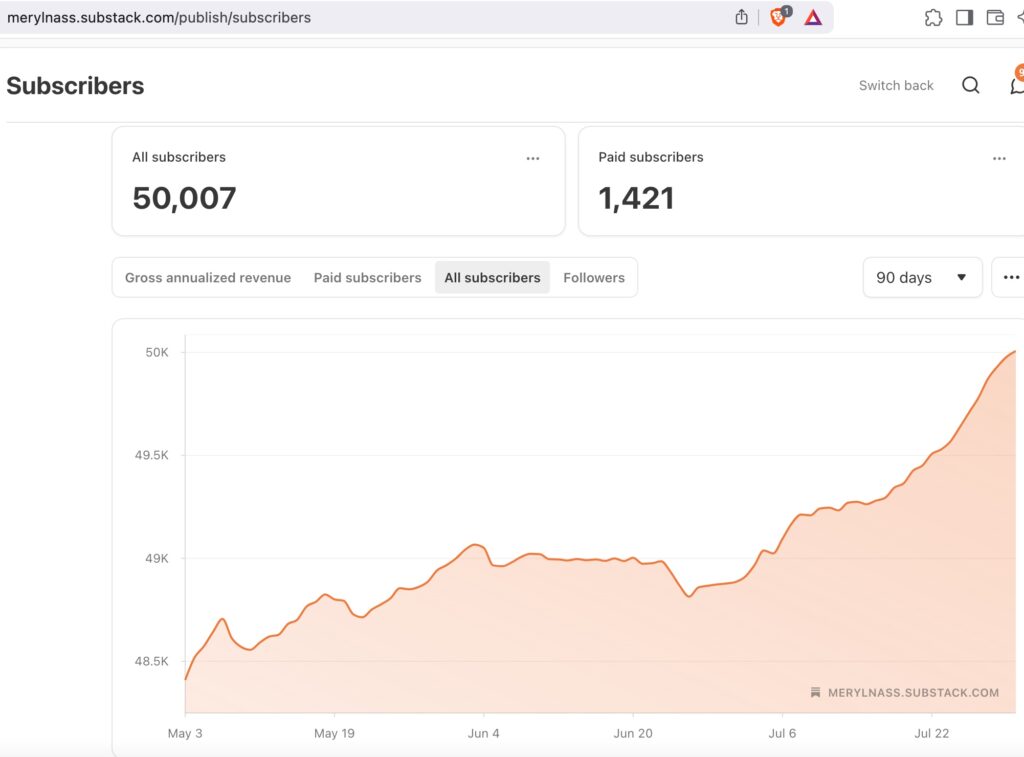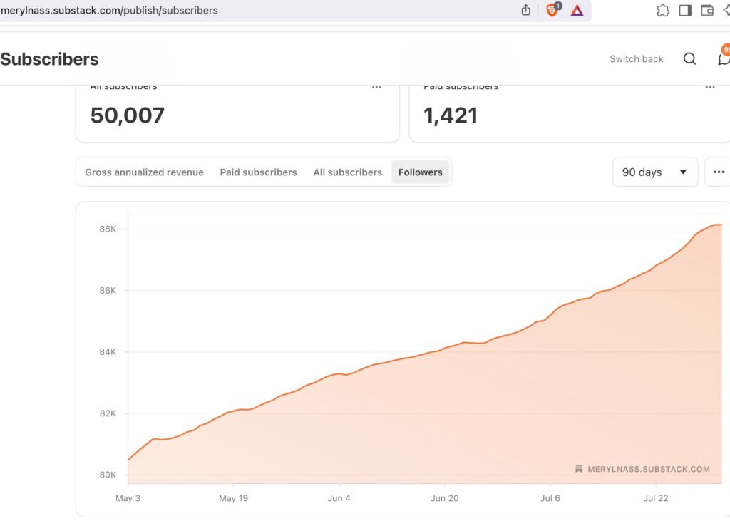 This substack is up to 50,000 subscribers and 88,000 total followers. Yippee!
