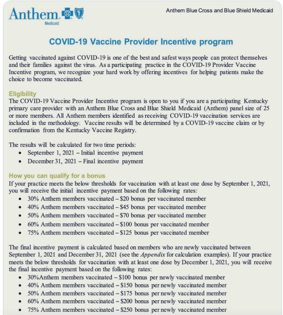 And I was offered financial incentives by insurers for achieving a sufficient percentage of vaccinated adults when in private practice 25 years ago.