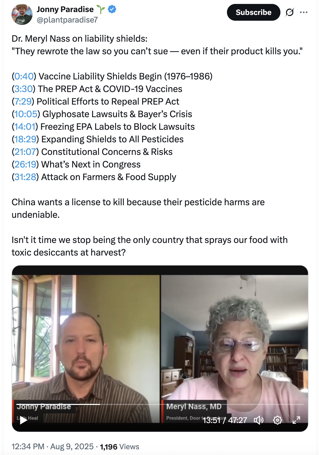 Interview with Jonny Paradise on the history of vaccine liability shields, pesticide shields and the attack on farming