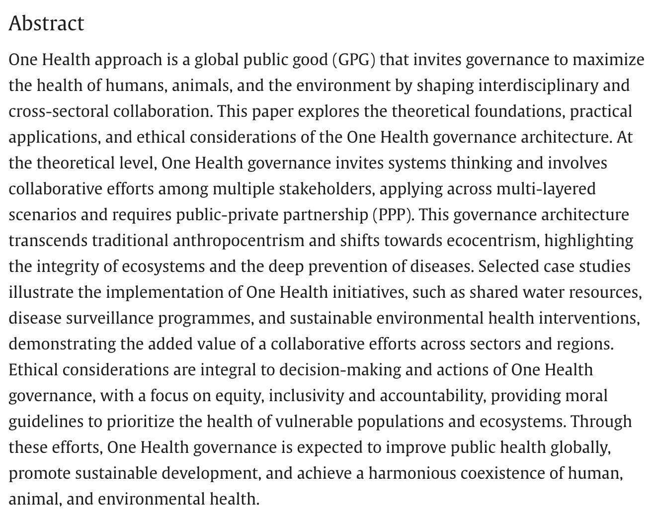 In case there was any question or controversy regarding the purpose of One Health, this article should alleviate it.