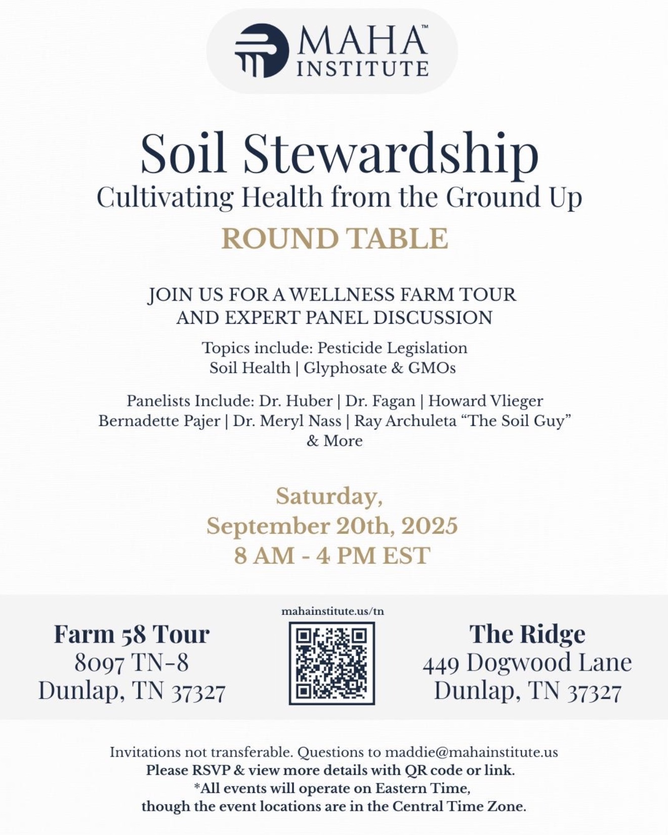 Saturday September 20: Soil Stewardship. MAHA Institute, Dunlap, Tennessee
