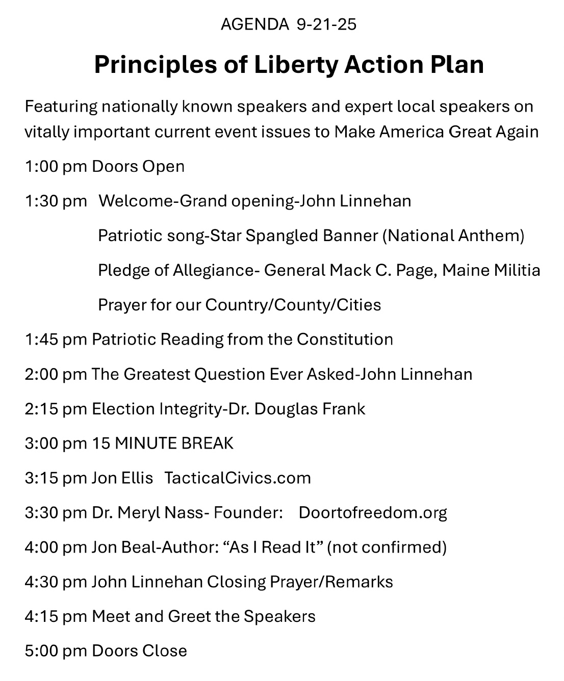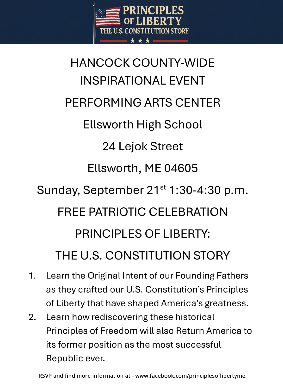 Sunday, September 21: Principles of Liberty in Ellsworth, Maine