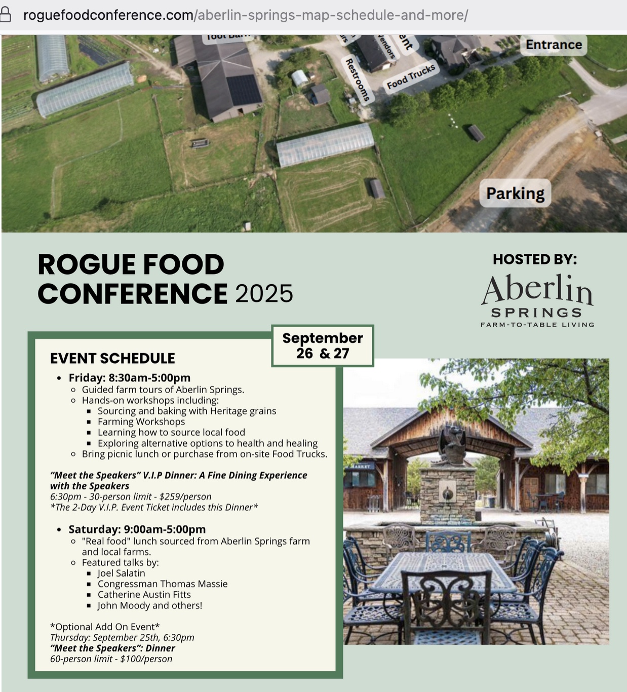 Friday-Saturday, September 26-27: Rogue Food Conference, Aberlin Springs, Cincy, Ohio