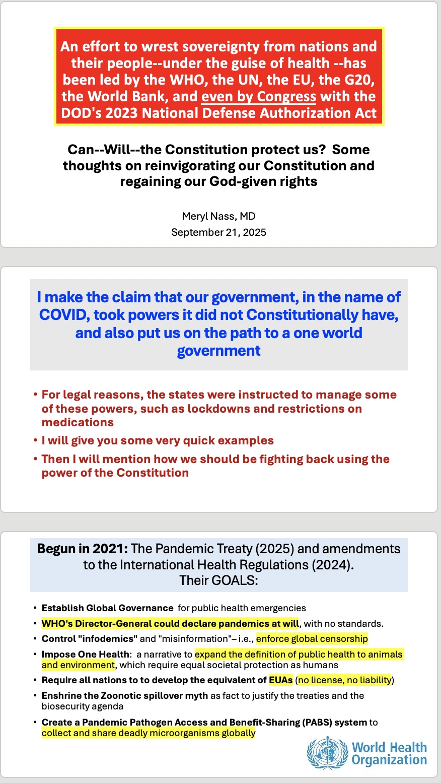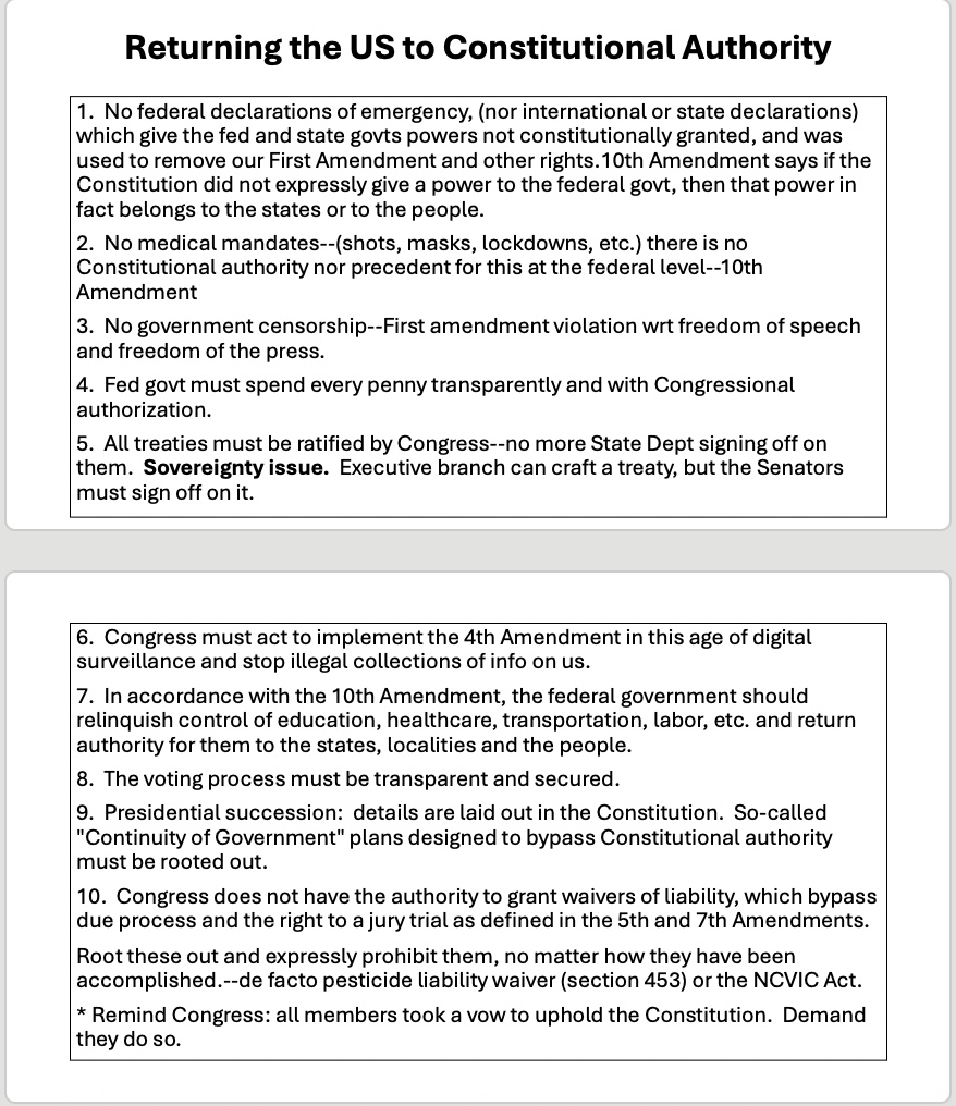 Quick summary of efforts to use health to control the globe, followed by how we could turn the country around and save it from globalism if only we returned to ten Constitutional principles