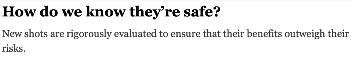 Really? This might have been true ten years ago, but it certainly has not been true for vaccines approved in the 20teens. Heplisav-B—a Hep B vaccine for adults, was approved (licensed) knowing that it might cause heart attacks in 2017.