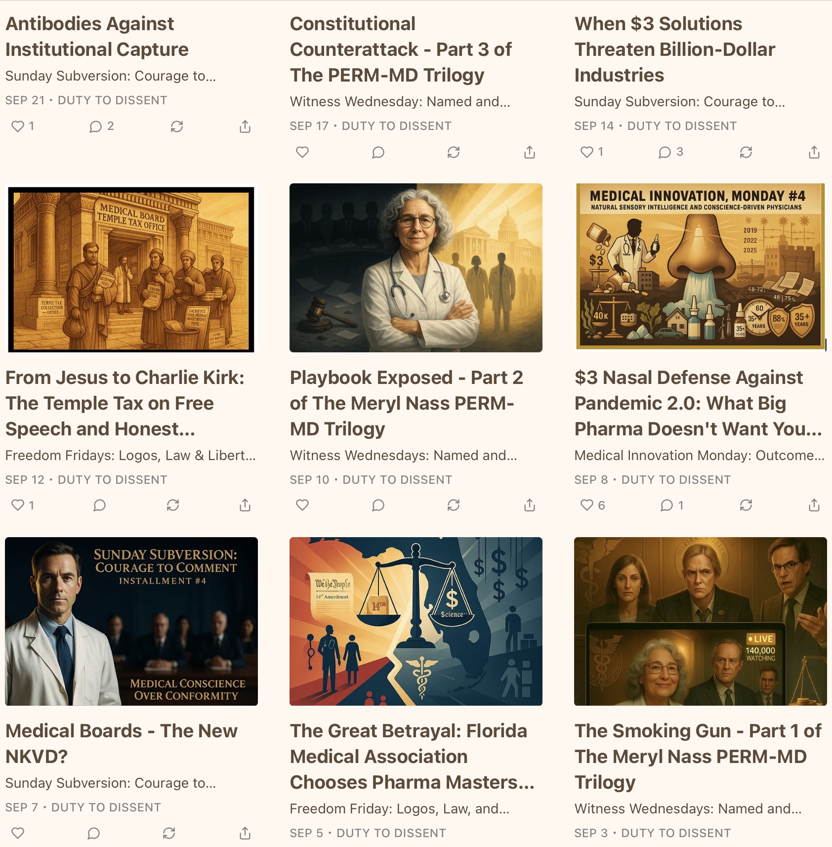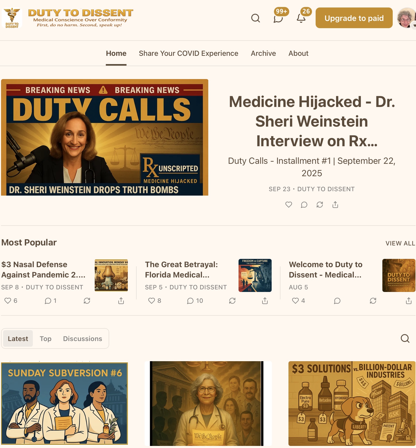 Duty to Dissent – Medical Conscience Over ConformityStories of medical professionals choosing conscience over conformity during the COVID era, documenting medicine’s historic transformation from institutional capture to authentic patient care.