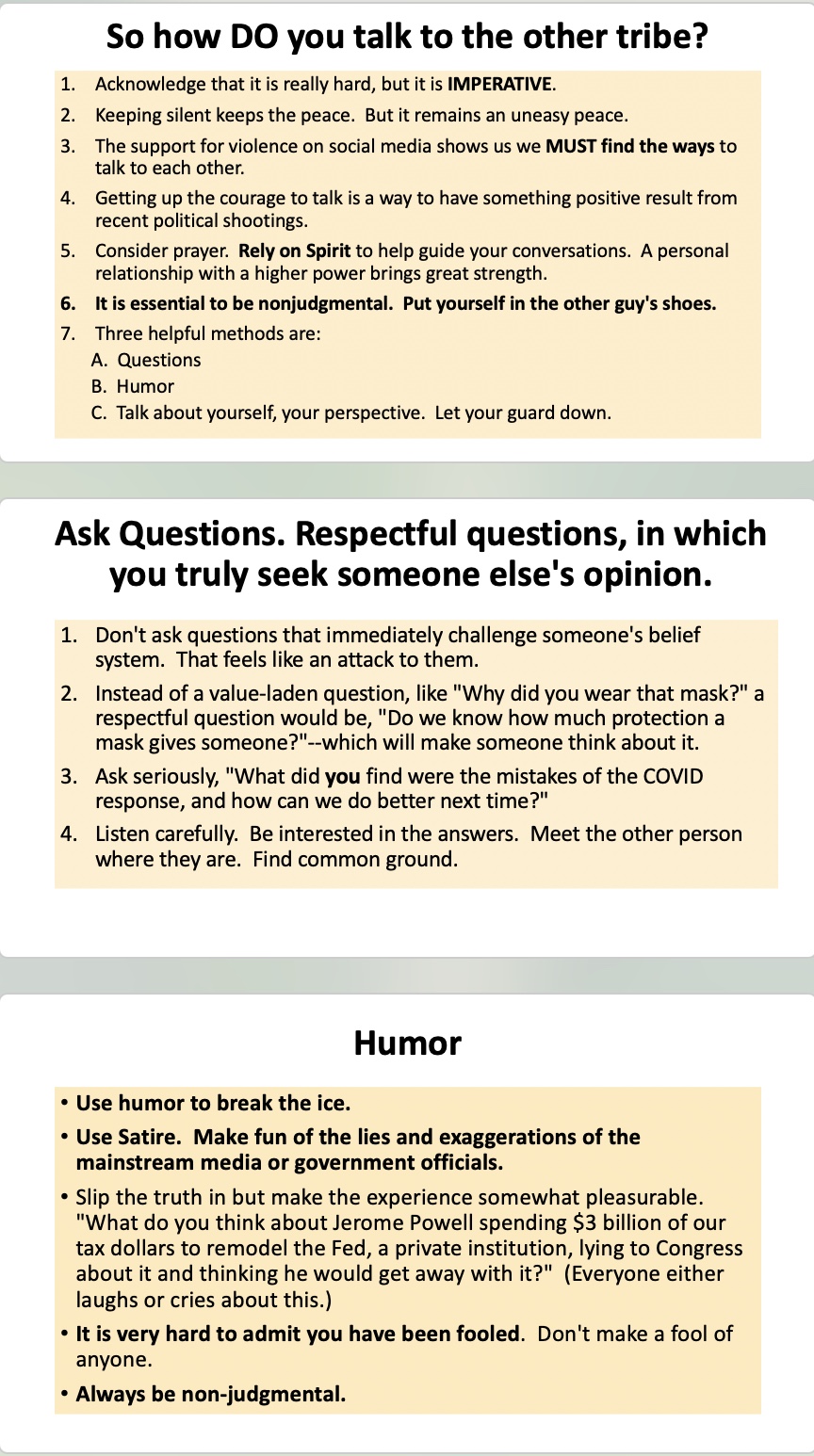 I am giving 2 talks at the Rogue Food Conference in Aberlin Springs this weekend. Here are the slides for the first talk on why we have been tribalized and the necessity to overcome it.