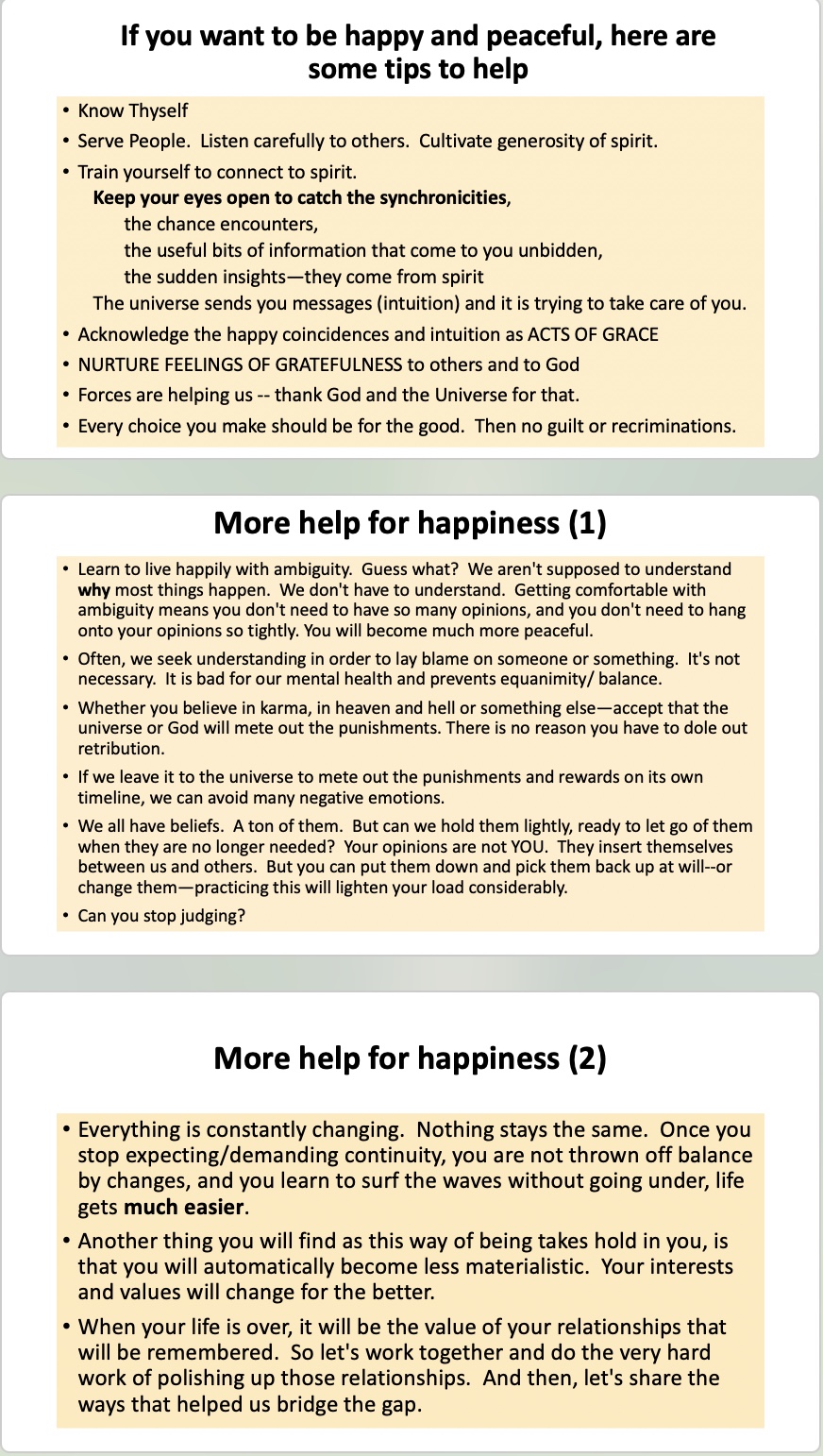 The next part was not really part of the topic, but rather some life lessons from a 74 year old that may help you live a happier and more fulfilled life.