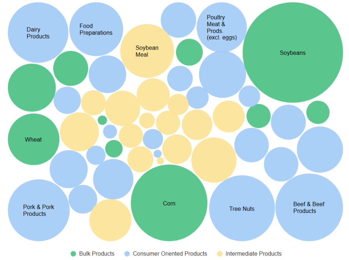 Soybeans were the number one U.S. agricultural export, valued at about $24.5 billion.