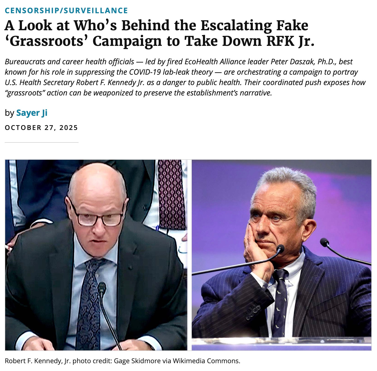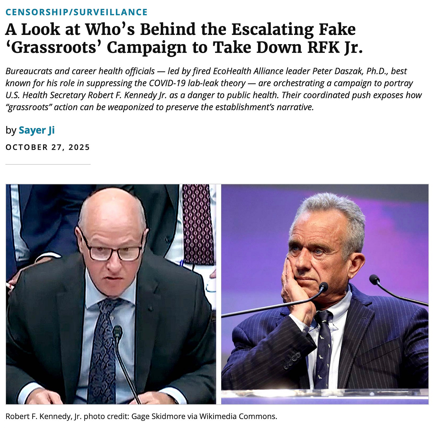 Manufactured “grassroots” campaign: An ostensibly broad coalition of science and public health organizations (some newly minted) has launched a concerted campaign to force the removal of U.S. Health Secretary Robert F. Kennedy Jr. — including multiple petitions, open letters and a planned protest march in Washington. While presented as a spontaneous uprising of concerned experts and citizens, evidence shows this movement is a carefully orchestrated effort by establishment insiders.
