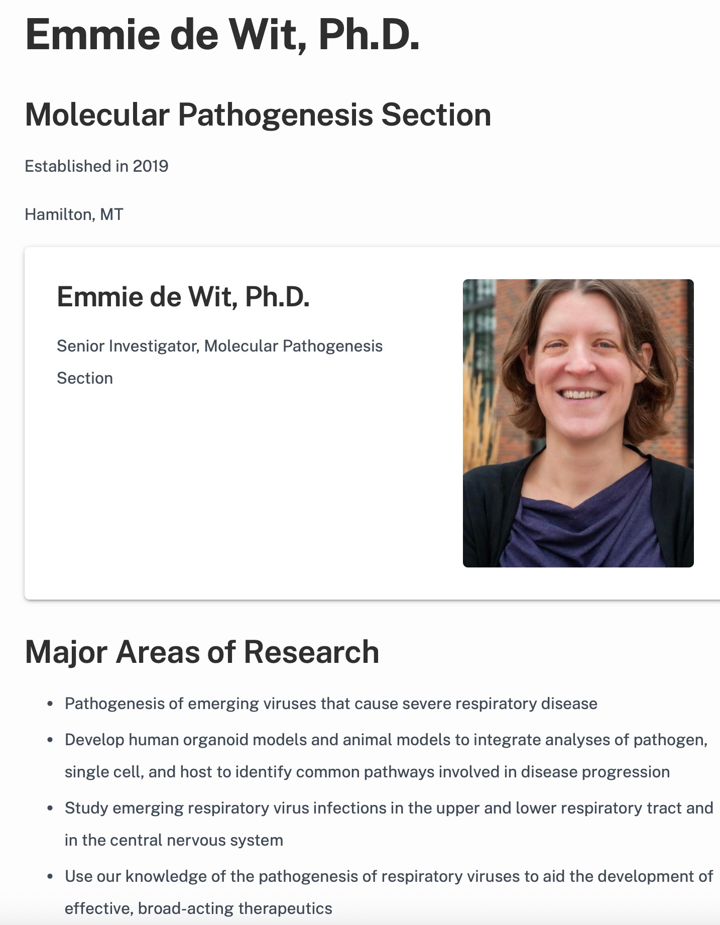 Vincent Munster’s wife Emmie de Wit, PhD studies human pathogenic respiratory viruses. Why not come out and say “coronaviruses” instead of dancing around it? Yes, flu, RSV and a few others do exist. Have these bios been to the laundromat?
