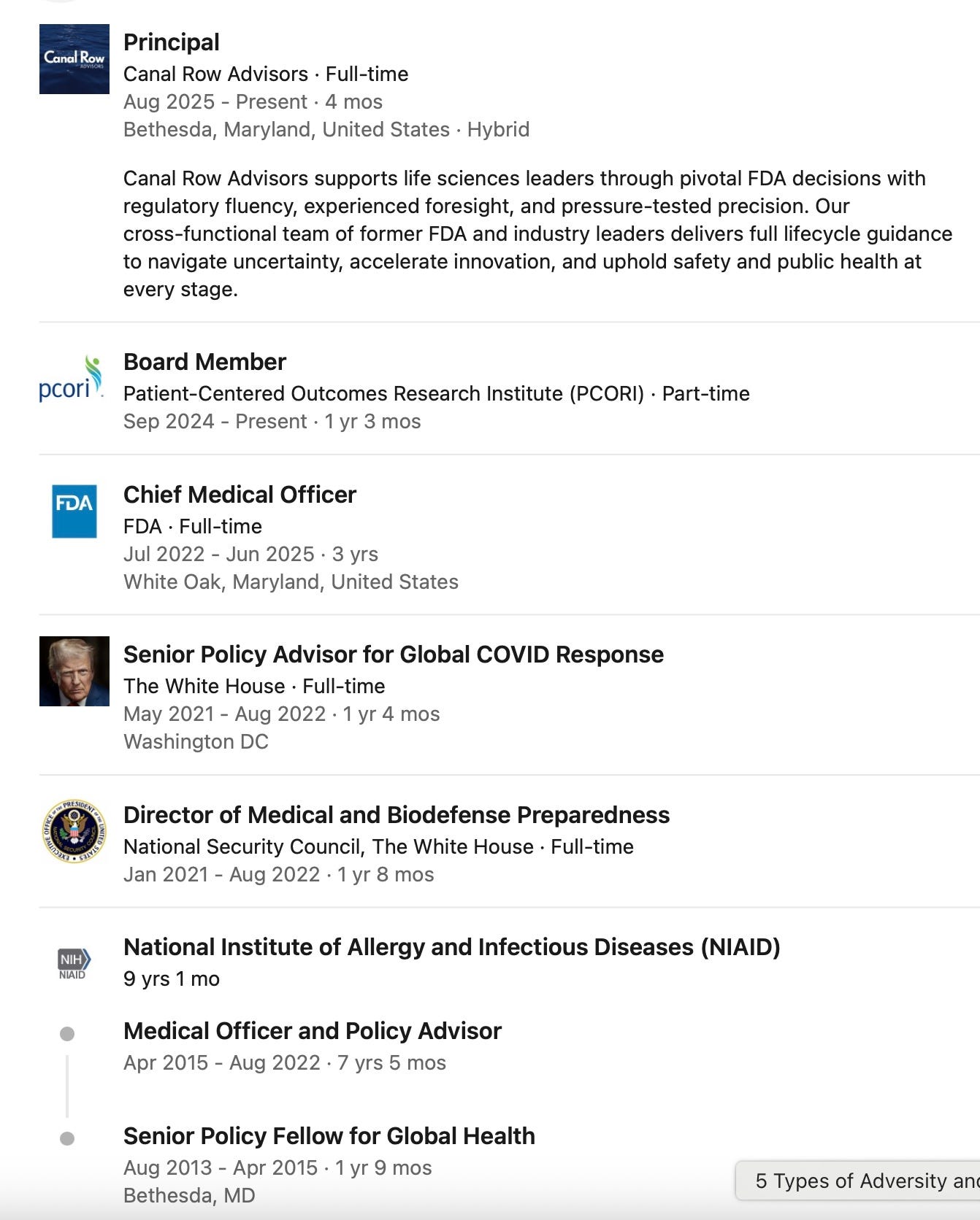 and here is her LinkedIn bio. She is now a consultant to the pharmaceutical industry.