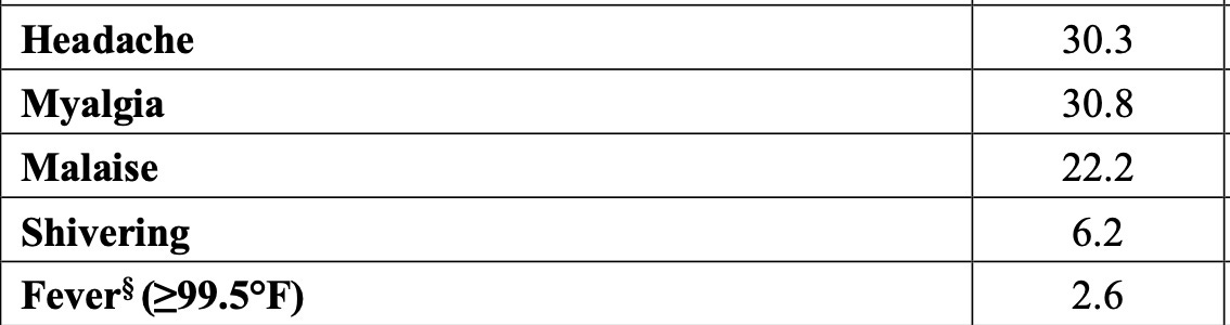 Below it is apparent that the Pfizer modRNA vaccine causes more adverse reactions of every type compared to the Fluzone, the standard (comparator) flu shot.