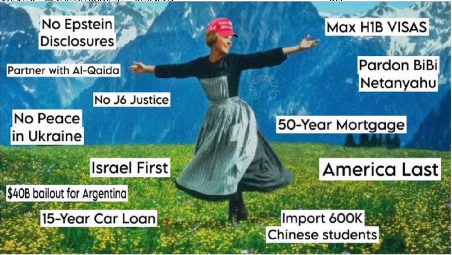 And that Sound of Music image didn’t even include the rollout of the surveillance state, digital IDs and money, and the Charley Kirk assassination, which is associated with yet another patsy and an obvious coverup. It’s a terrible look for this administration, which needs to be cleared up by a proper investigation.