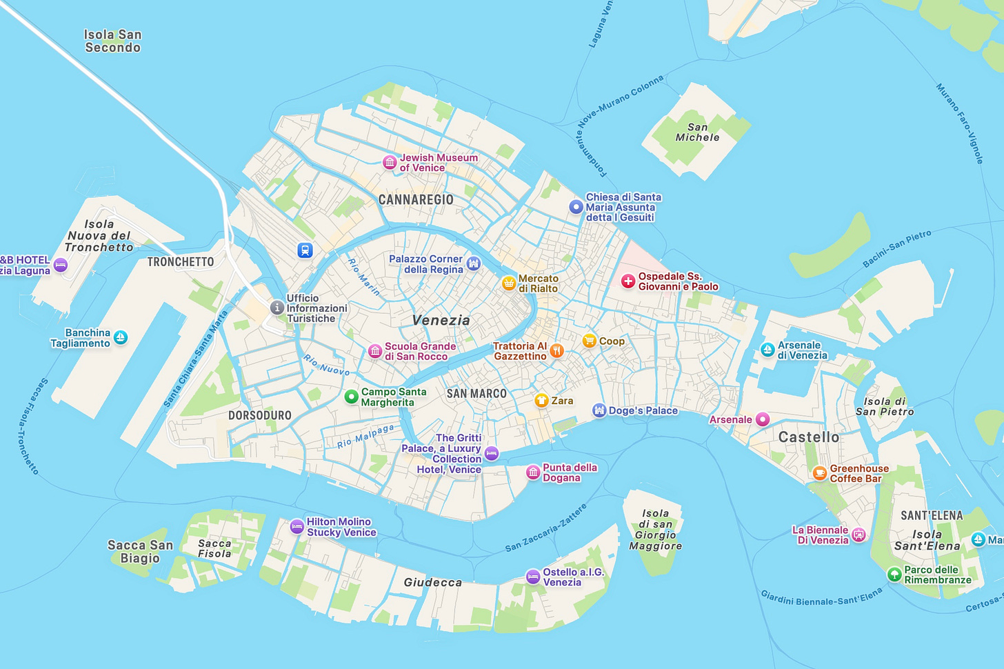 Those who can afford it take a boat to their hotel. Here is a map of the city.