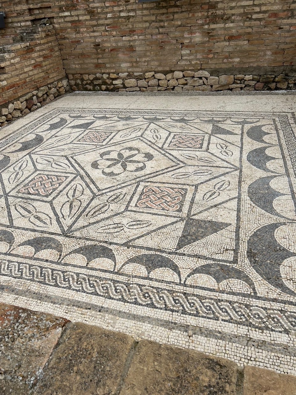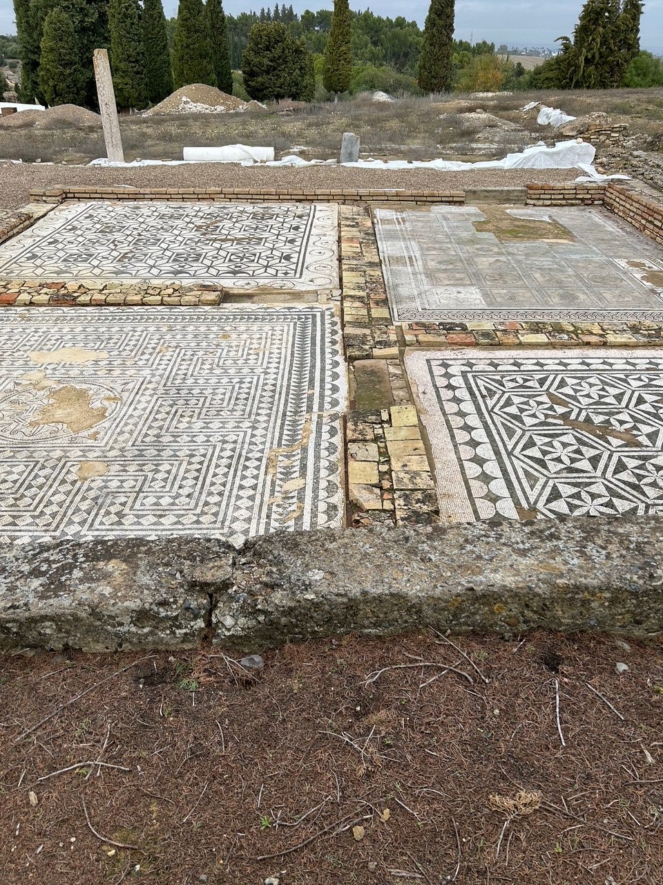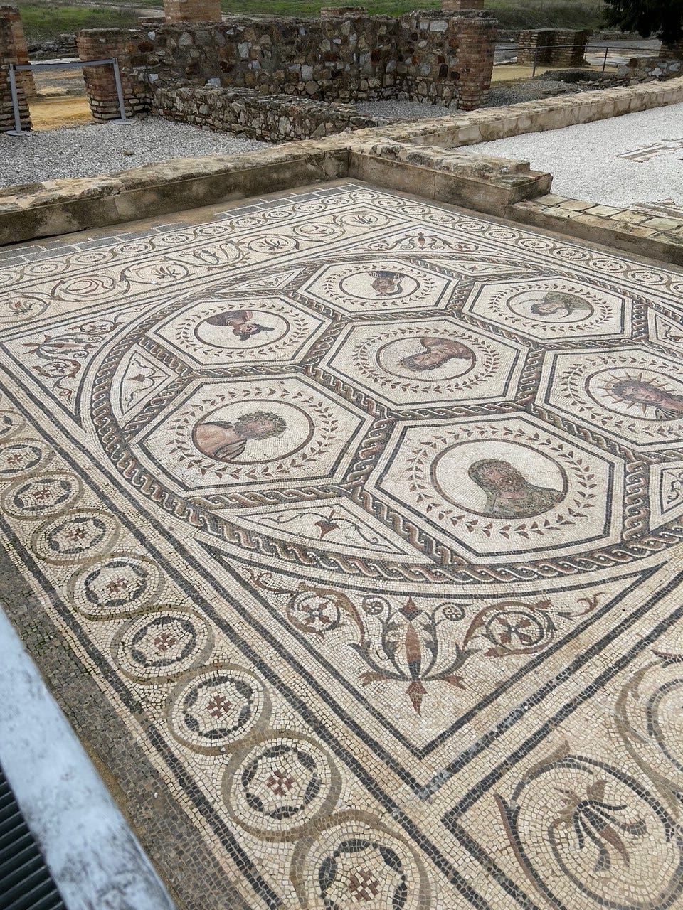 The missing areas are thought to be often the most important, stolen long ago. One wonders whether some of the unique Moorish designs (the Moors took over southern Spain in 717) actually derived from Roman abstract designs.