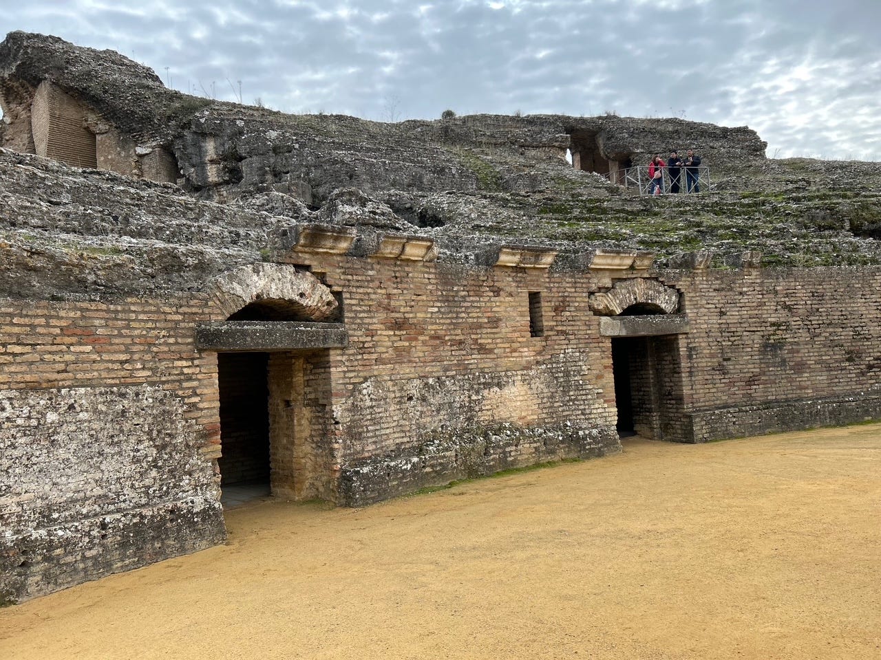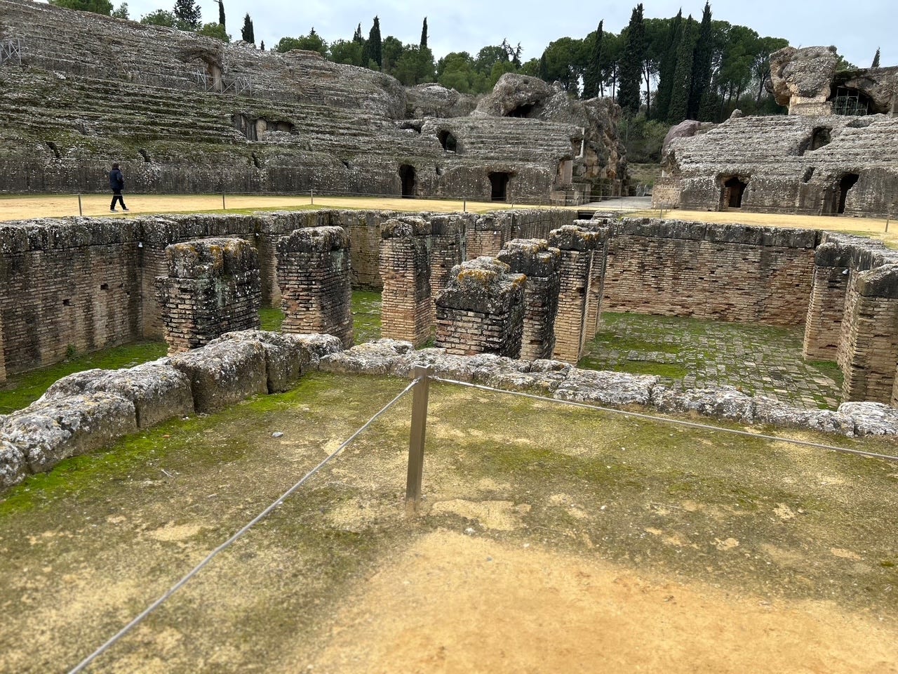 This is part of what remains of the ampitheater. It is believed to have been 3 sections high, but the top section is missing, probably pilfered for building materials. They had gladiator fights, animal fights, actual circus acts, and that pit was usually coverd, but the cover could be removed to have ships battle each other.