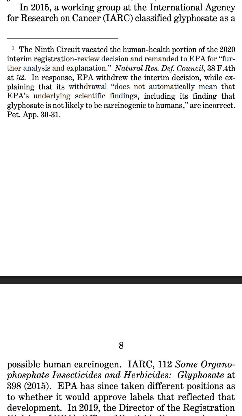 Look what I found: DOJ Brief to the Supreme Court misstates the IARC conclusion that glyphosate was a *probable* carcinogen in 2015