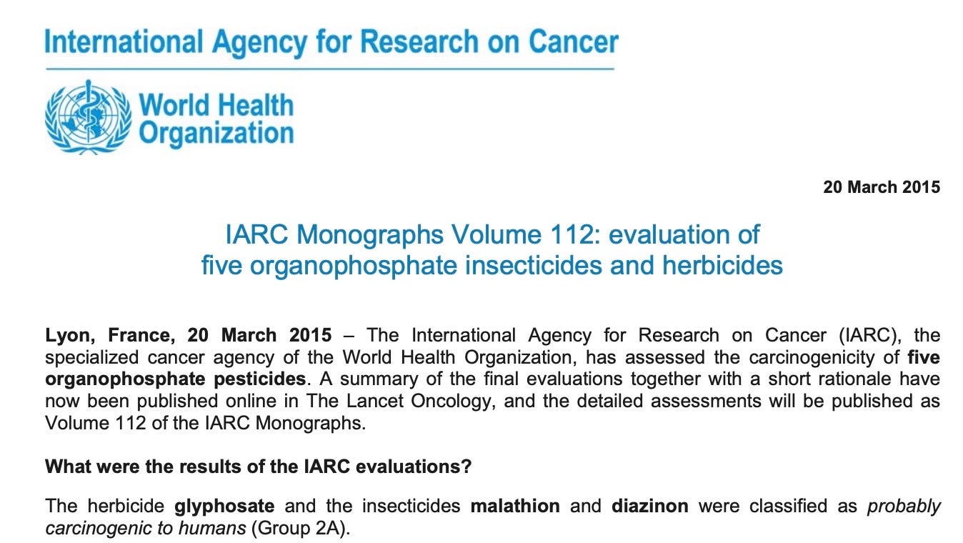 Here is the (I’d say deliberate misstatement to the Court) incorrect claim about the IARC finding on glyphosate that minimizes concern: