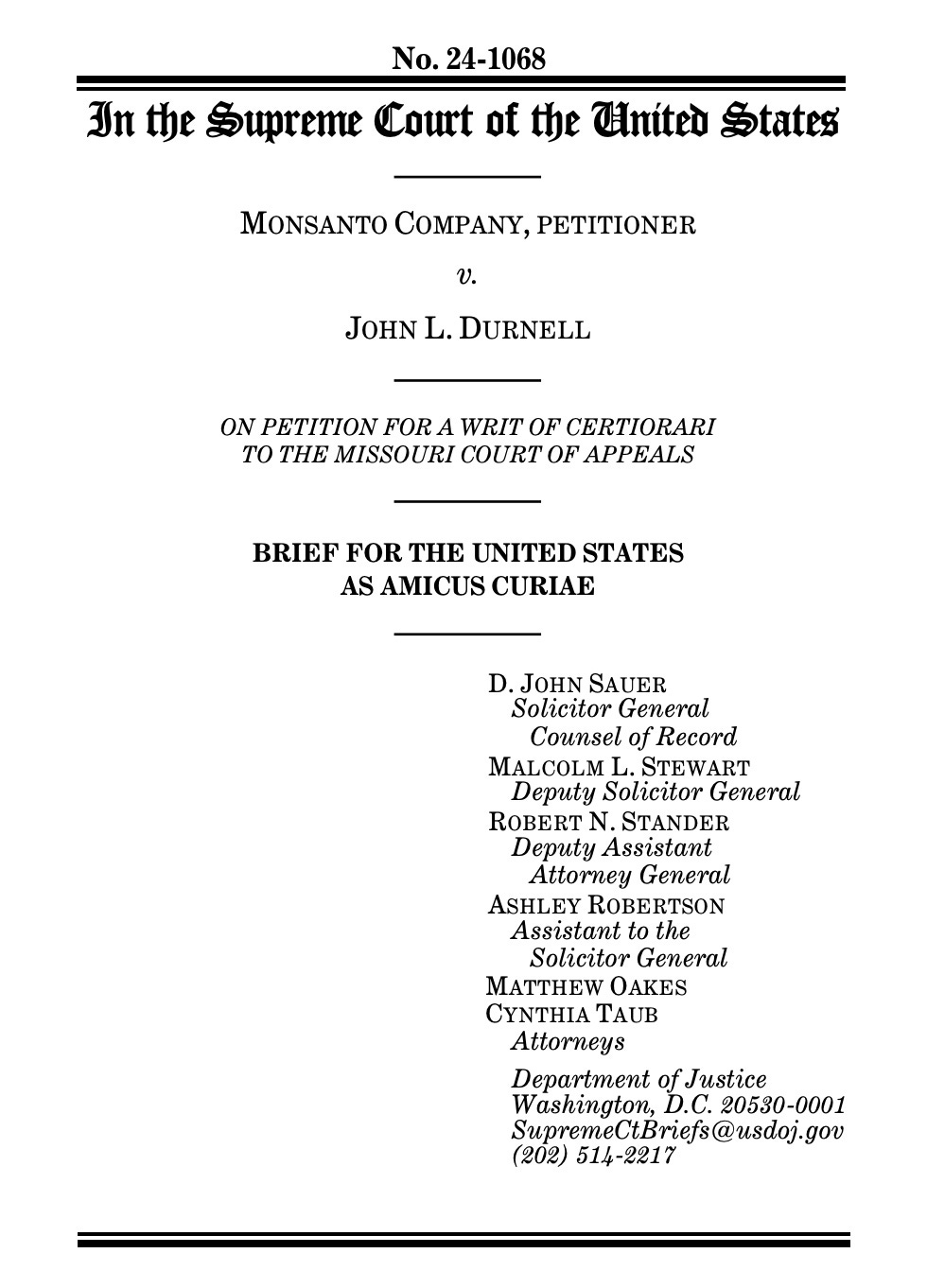 Look what I found: DOJ Brief to the Supreme Court misstates the IARC conclusion that glyphosate was a *probable* carcinogen in 2015