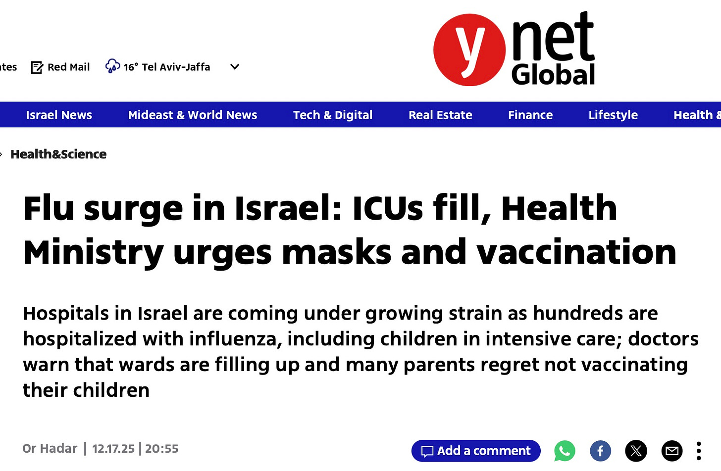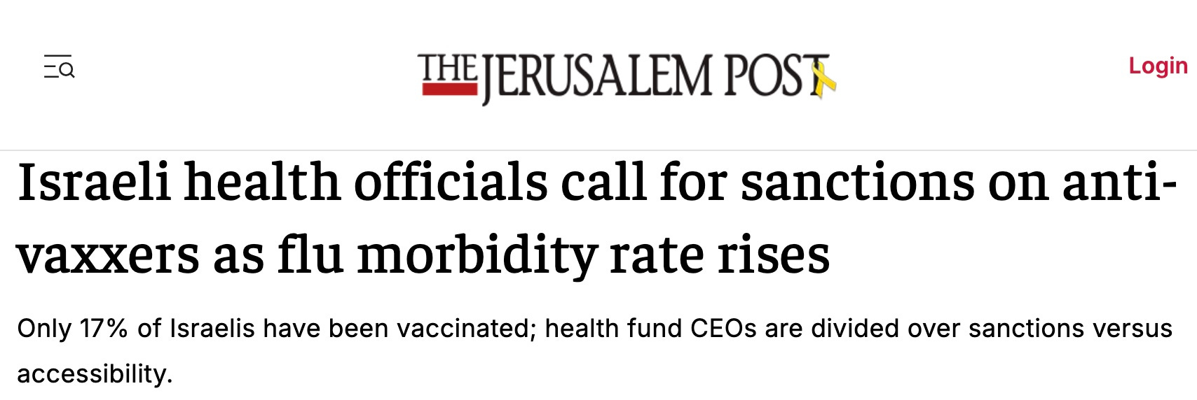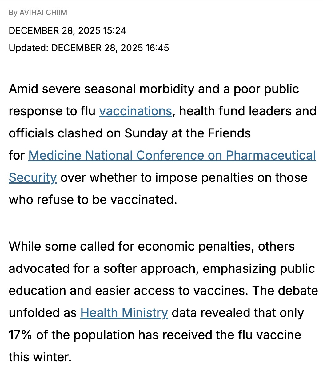 Israeli health officials discuss vaccine mandates because only 17% of Israelis got a flu shot!