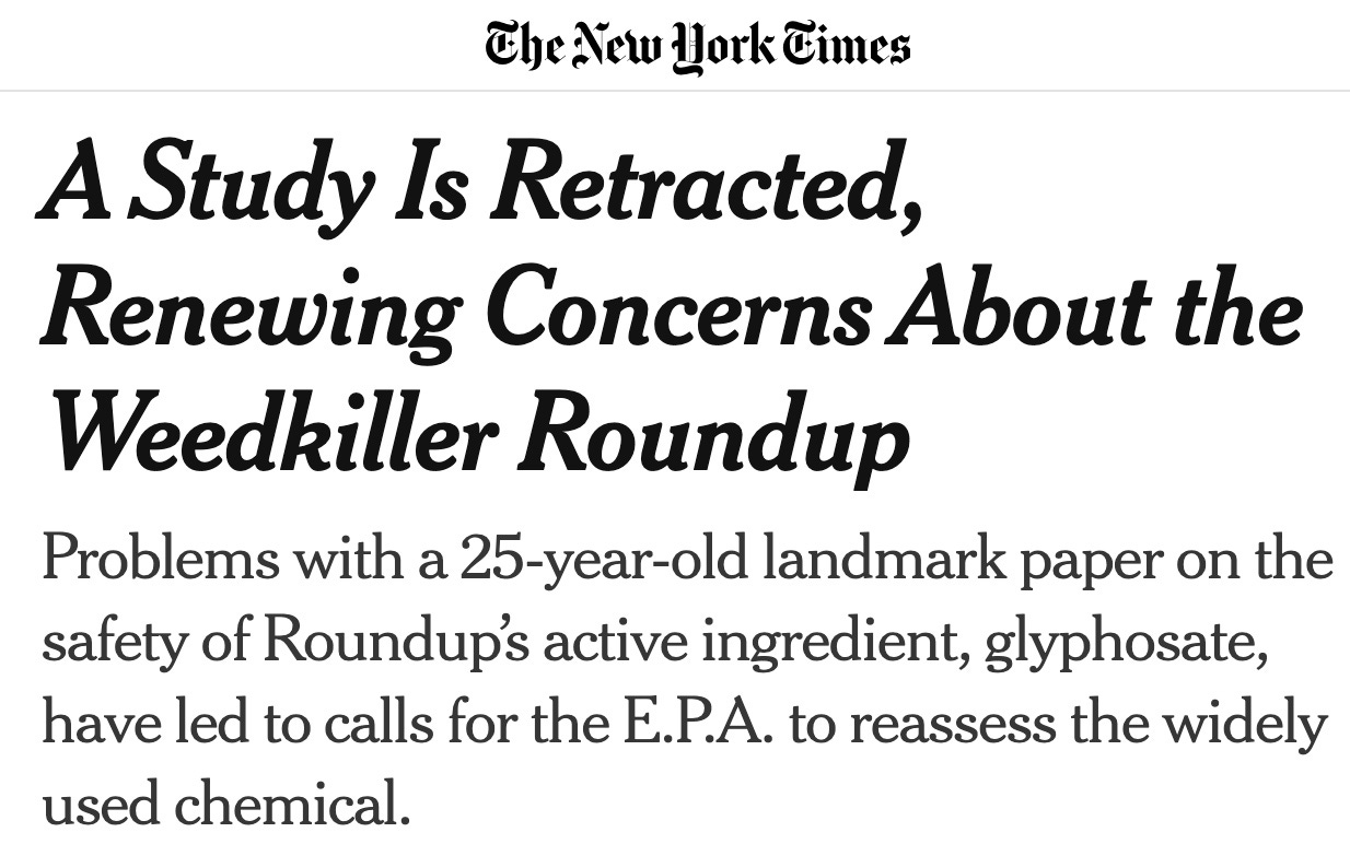 Last month, the study was retracted by the scientific journal that published it a quarter century ago, setting off a crisis of confidence in the science behind a weedkiller that has become the backbone of American food production. It is used on soybeans, corn and wheat, on specialty crops like almonds, and on cotton and in home gardens.