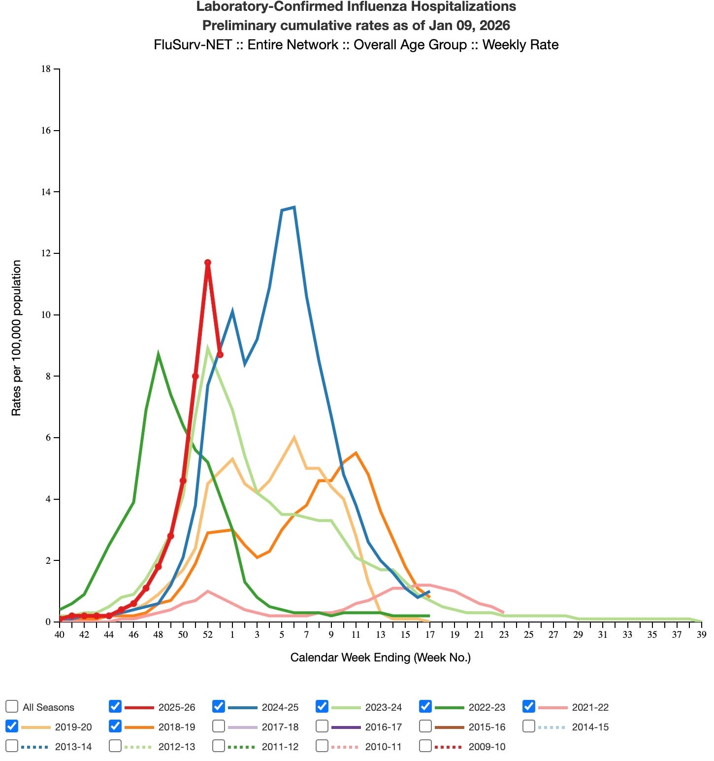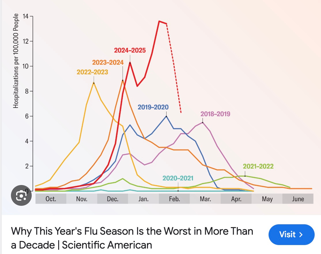 Check out how last year, Scientific American claimed that last year’s flu (2024-25) was the worst in more than a decade. In order to make the claim, they omitted the worse 2017-18 season, and only compared last year’s hospitalization rate to the prior 6 years. Is there any science left in Scientific American?