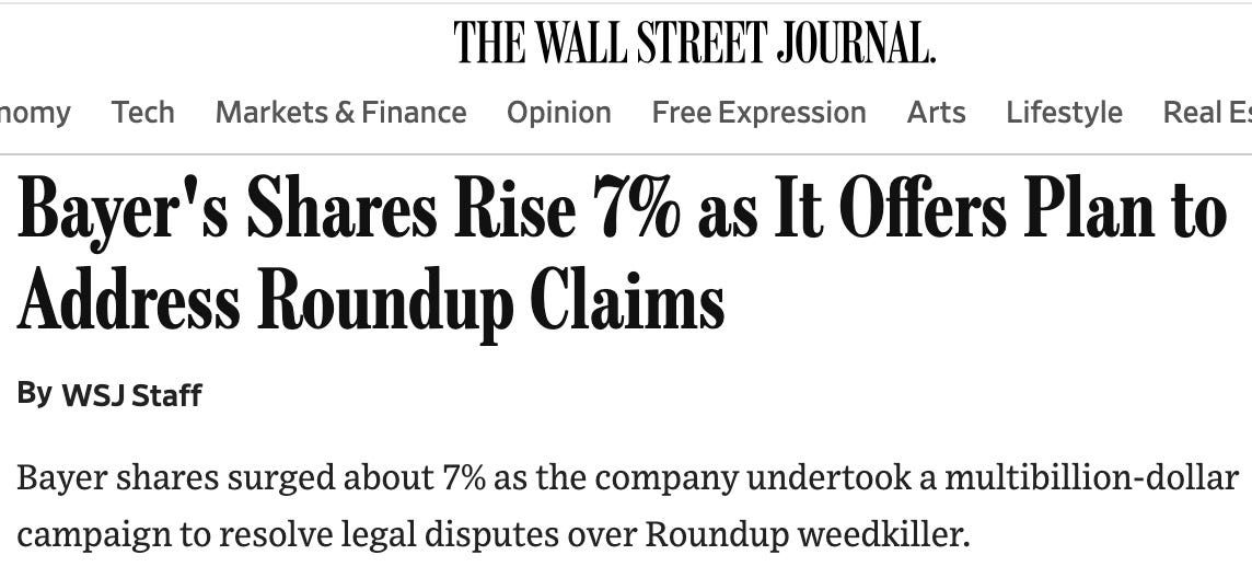 Scratching my head as to why this happened today, 6 days before the scheduled mark-up of a bill that could grant Bayer a liability shield. Is it looking like the liability shield does not have the votes? Hallelujah, if our elected Representatives are going to represent the people and not the Pesticide industry.