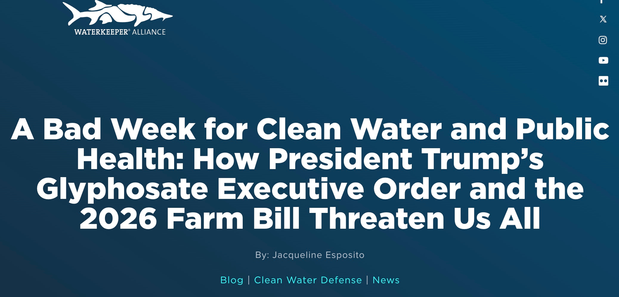 Waterkeeper Alliance points out yet more issues with the Farm Bill and Trump’s Executive Order on glyphosate.