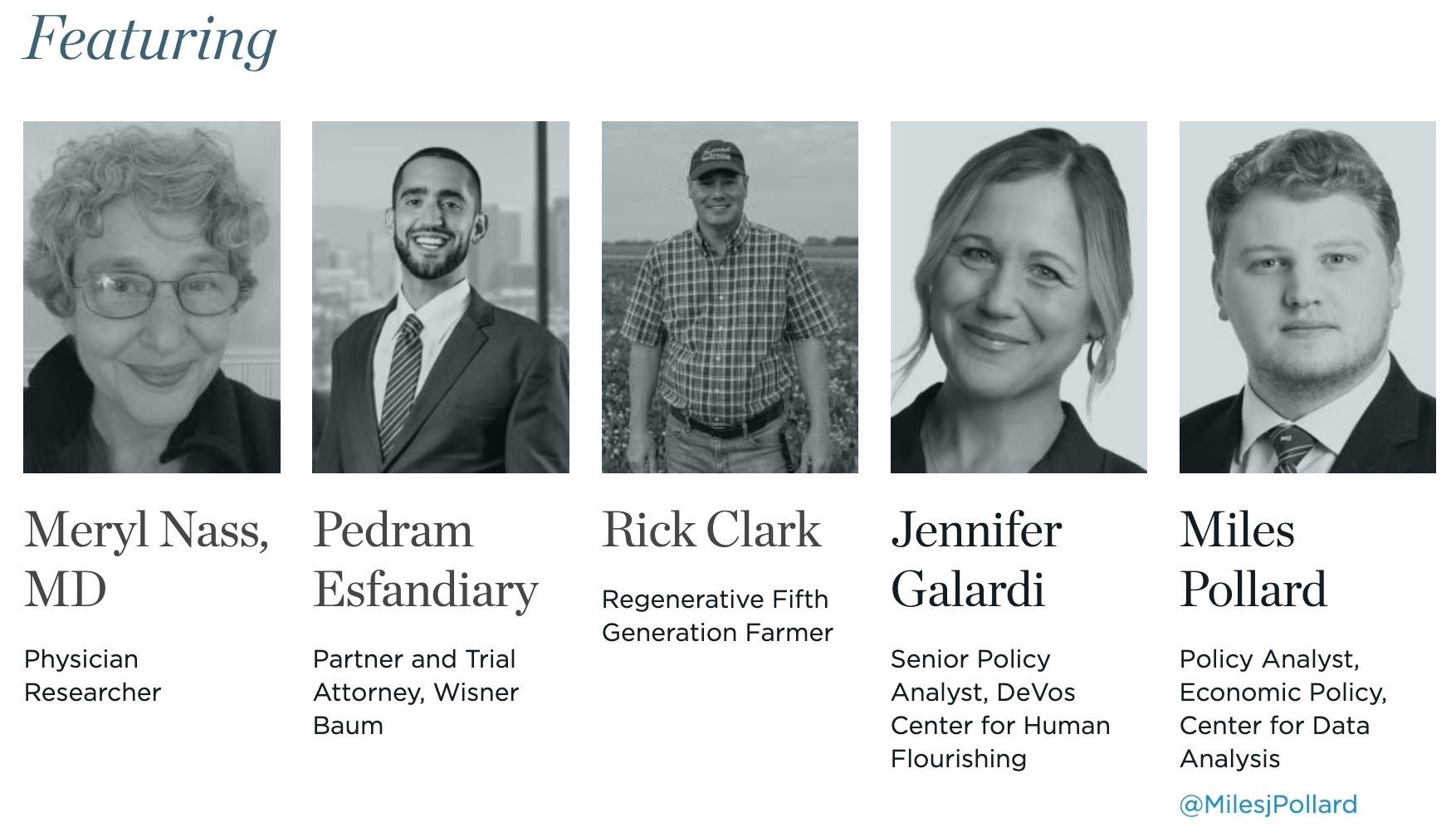 This event will bring together voices from industries, including medical research, law, farming, and health advocacy, for an in-depth and nuanced conversation. They will examine the real tradeoffs at stake: food affordability, farmer viability, public health, supply chain resilience, national security, and scientific transparency. As the national dialogue becomes more polarized, Heritage seeks to convene a disciplined discussion grounded in facts, accountability, and practical paths forward.