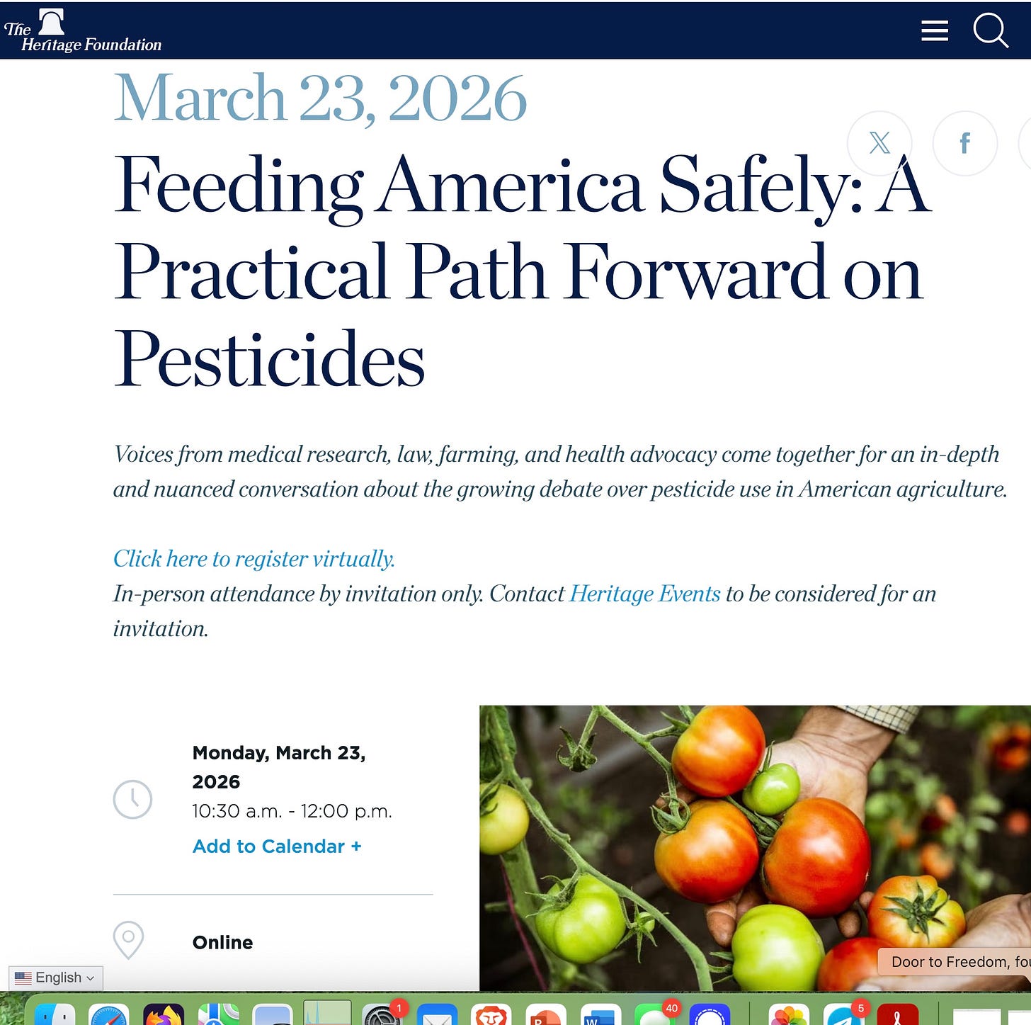 Reminder. Next Monday, online or in person (and it will be available later as a webinar): Feeding America Safely: A Practical Path Forward on Pesticides