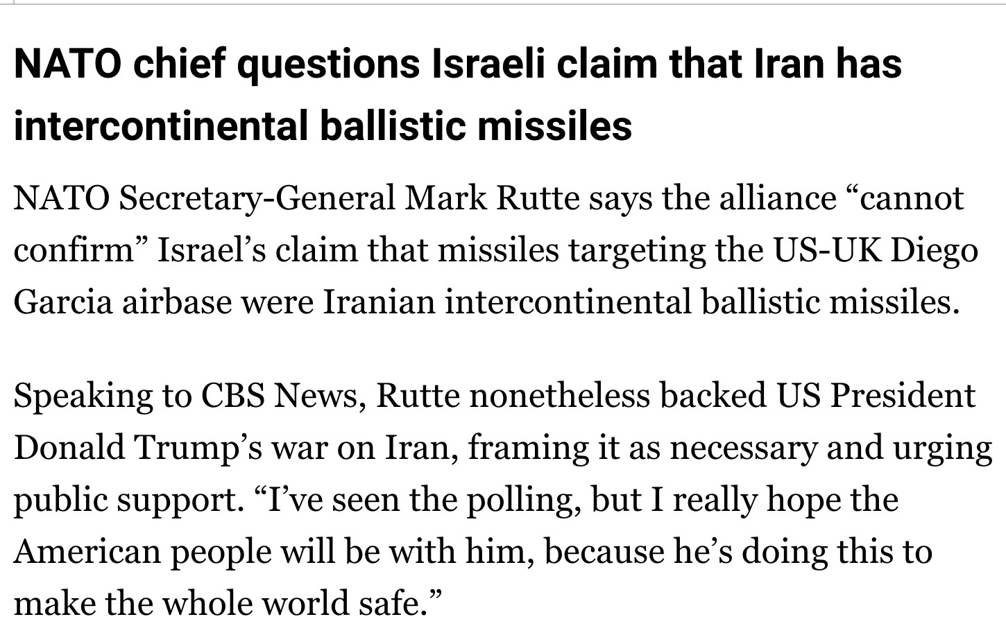 If the evil Mark Rutte, now head of NATO (after mismanaging the Netherlands) tells CBS he cannot confirm the story, it’s not true