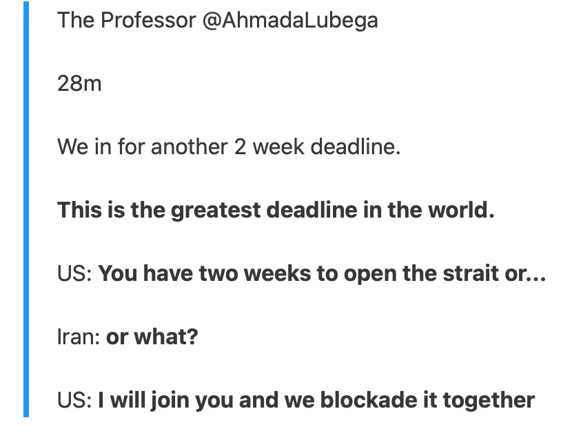 Trump: You seem to have forgotten that the deal is 10% for the Big Guy. ME. So I’m putting up my own toll booths. And this time it’ll be 80%!!