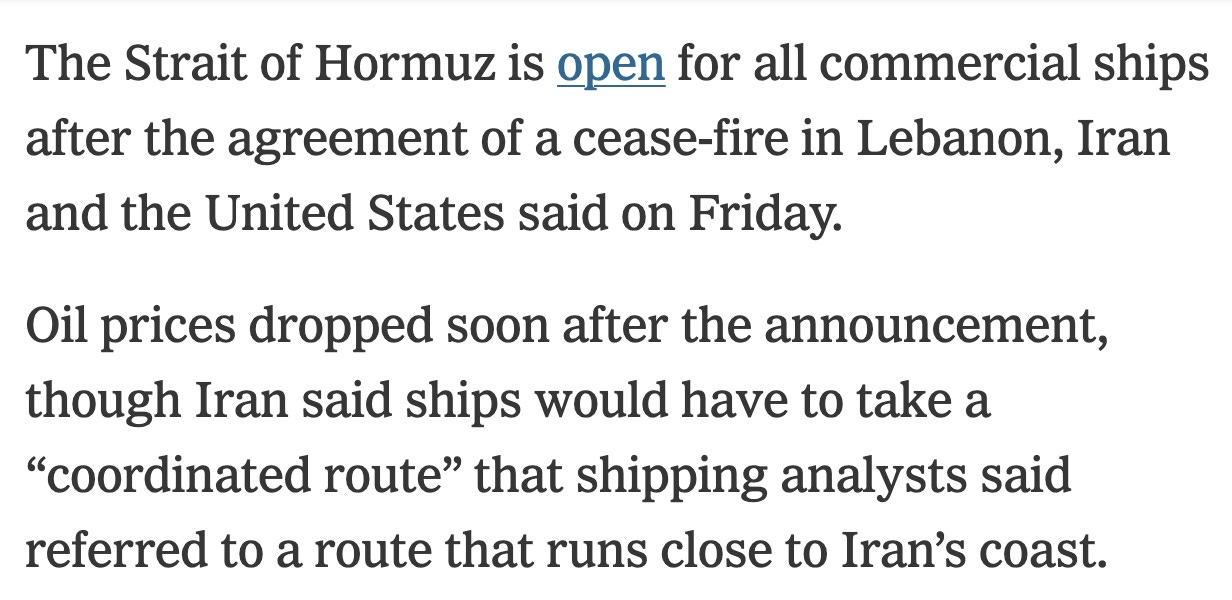 Is Hormuz open? The conditions for transit are not at all clear yet.