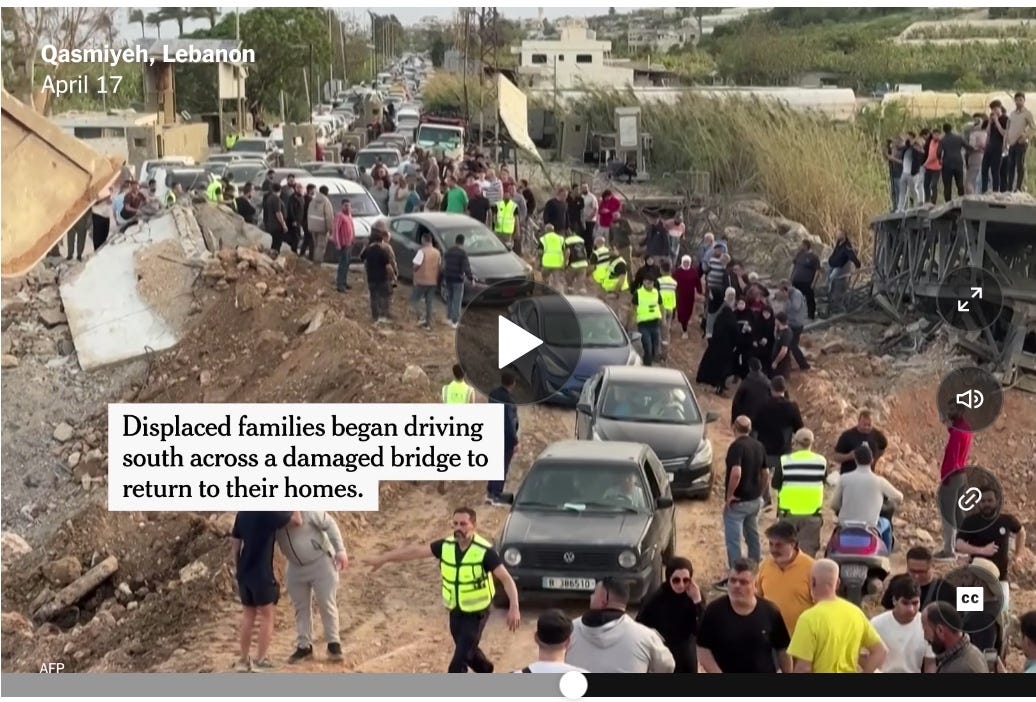 But thousands of Lebanese are returning south to their homes today. The images below are also from today’s NYT.