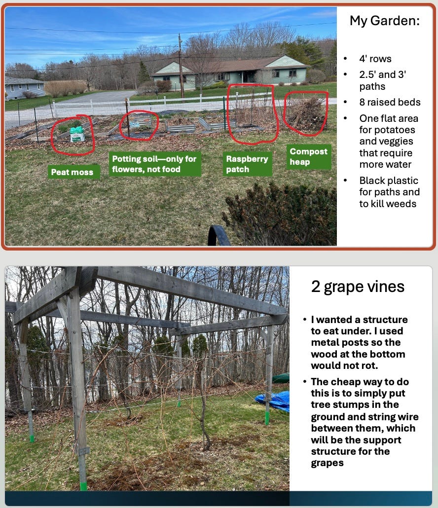 This type of garden (30 x 40’) does cost some money to start, but once you have it going the costs are very reasonable, as long as you are not paying for dirt.